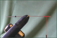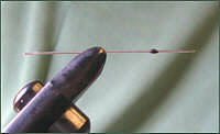 Tie a "stop" about 2mm long by winding black tying thread on to the needle about one centimetre from the needle point.