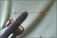 Tie a "stop" about 2mm long by winding black tying thread on to the needle about one centimetre from the needle point.