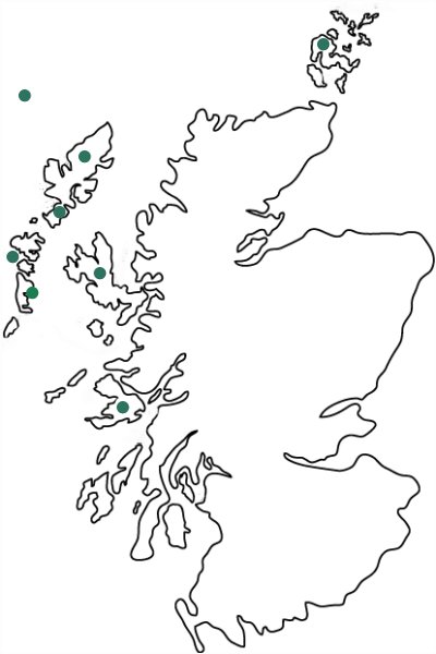 The Uists, Mull, Orkney and Shetland. Clicking on a green dot will take you to a